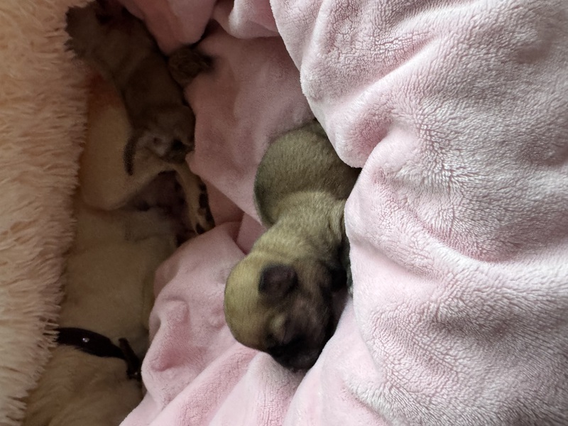 In einer sehr langen und anstrengenden Geburt sind die 1/2Welpen geboren..