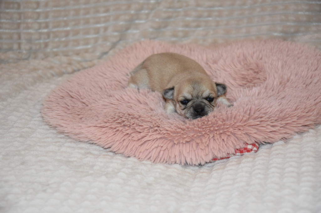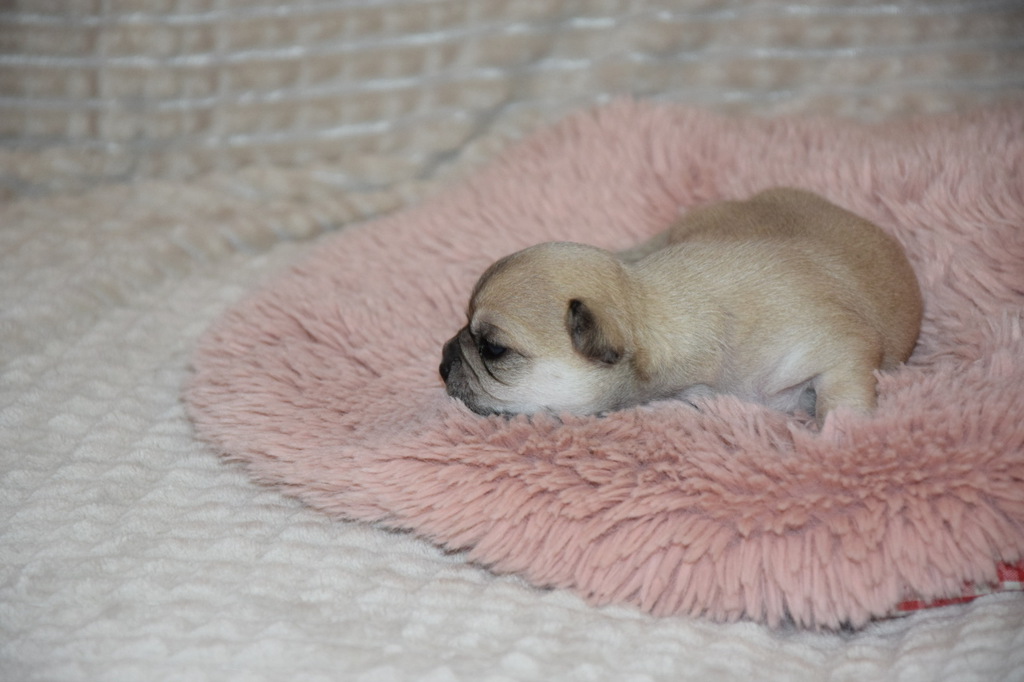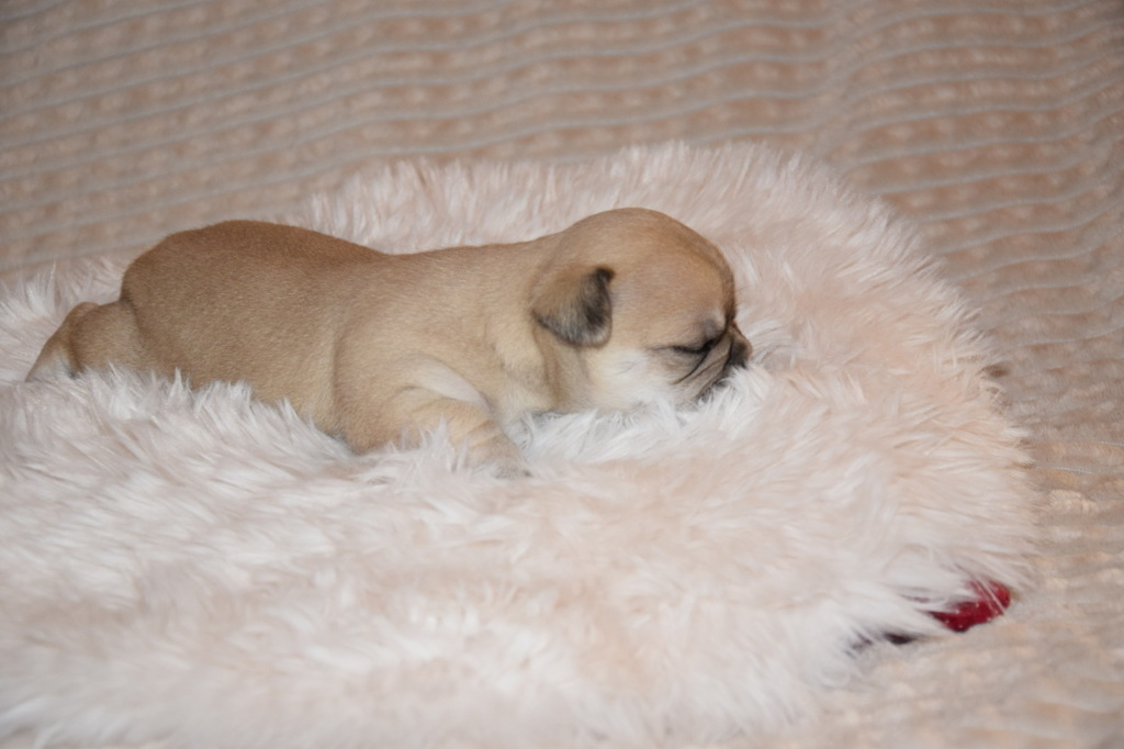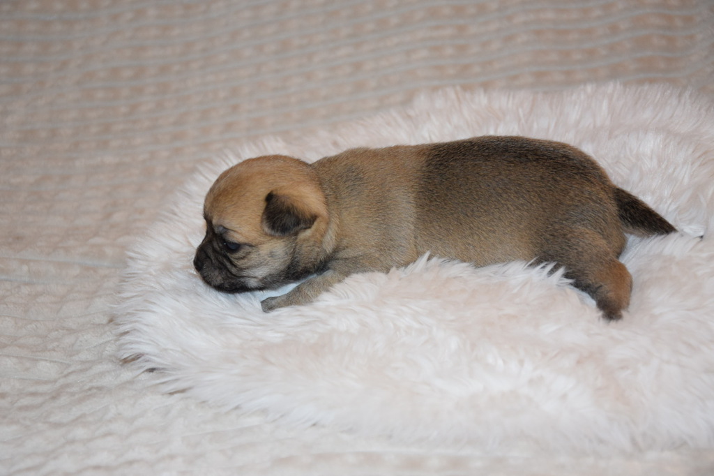 Genetisch können auch Langhaar Welpen geboren werden was man um die 4. Lebenswoche eindeutig sehen kann..