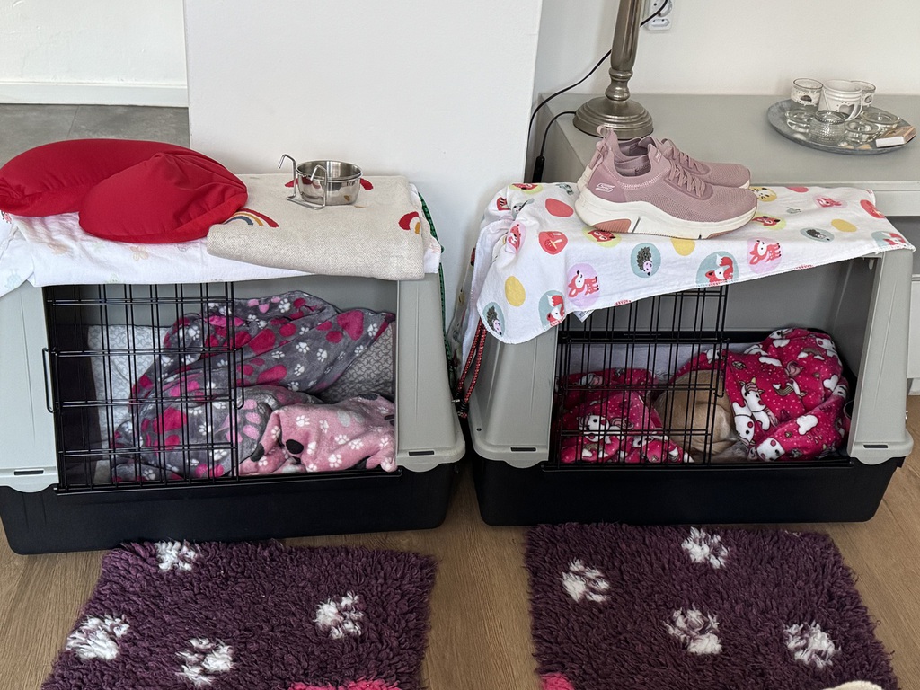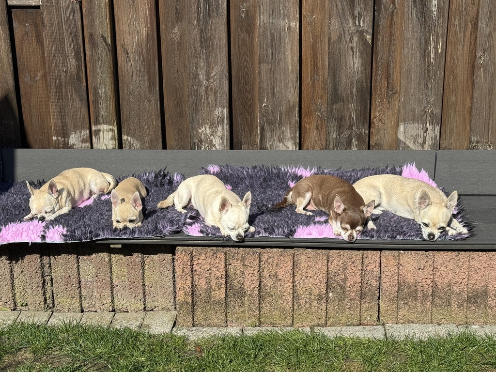Heute sind die Welpen schon 9 Wochen alt und gehen mittlerweile regelmäßig mit nach draußen und erledigen ihr Geschäft.. Alle Laufen frei mit den Mädels zusammen selbstbewusst im Haus herum.