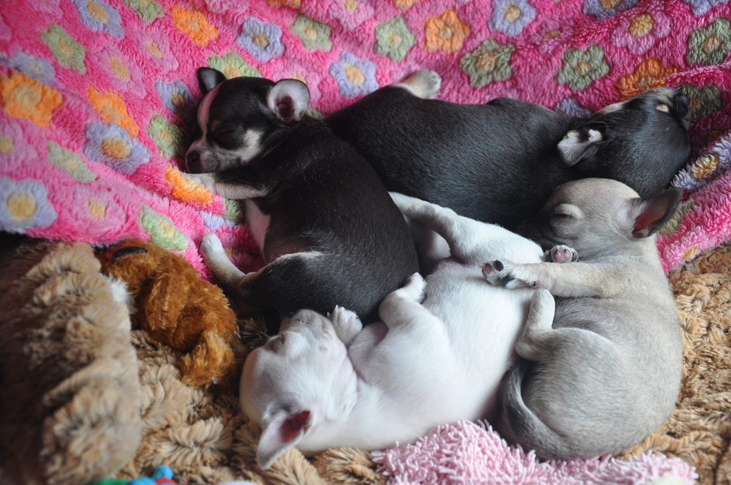 Heute sind wir 13. Wochen alt und ab heute sind wir nur noch zu 3.,,,