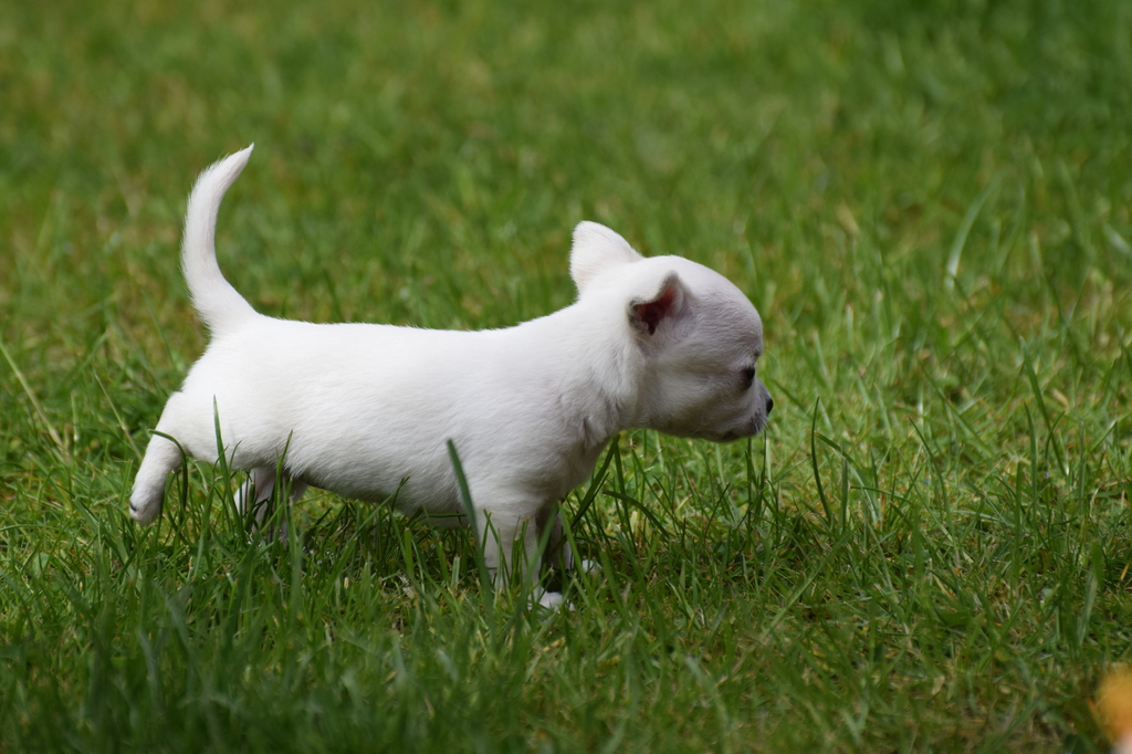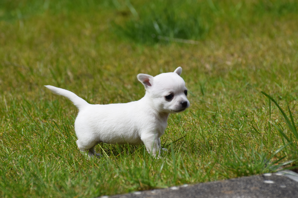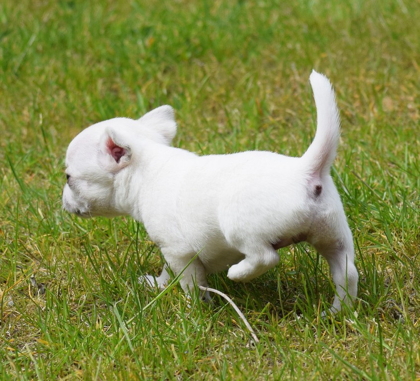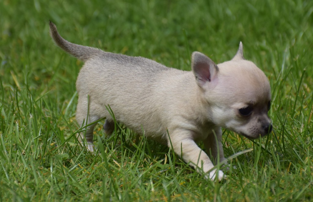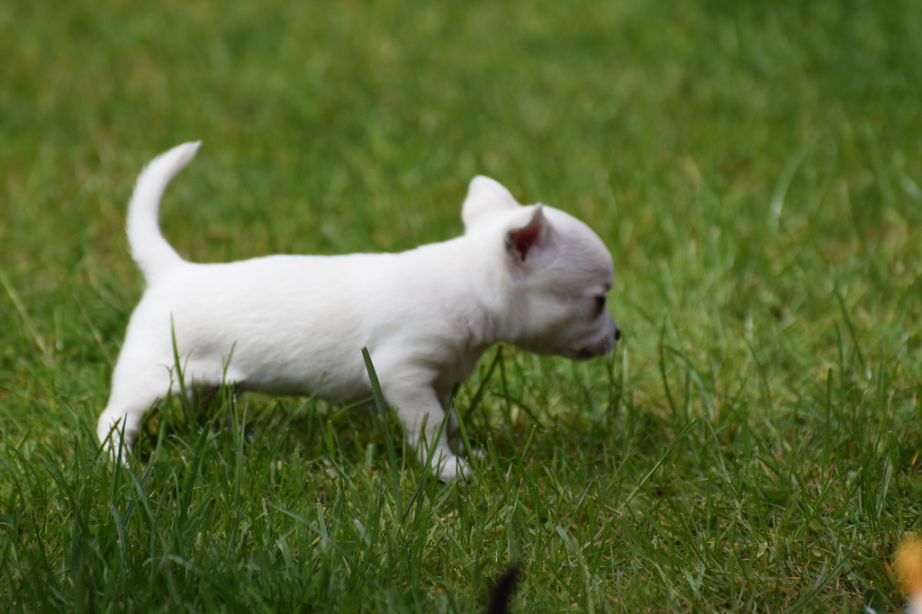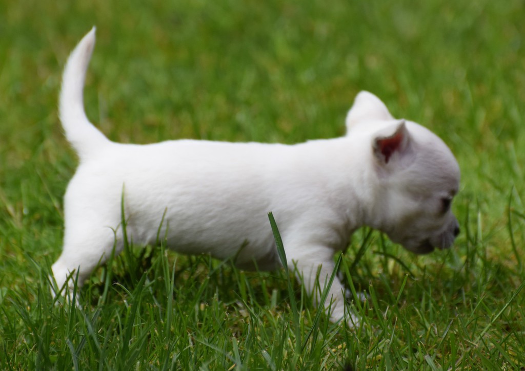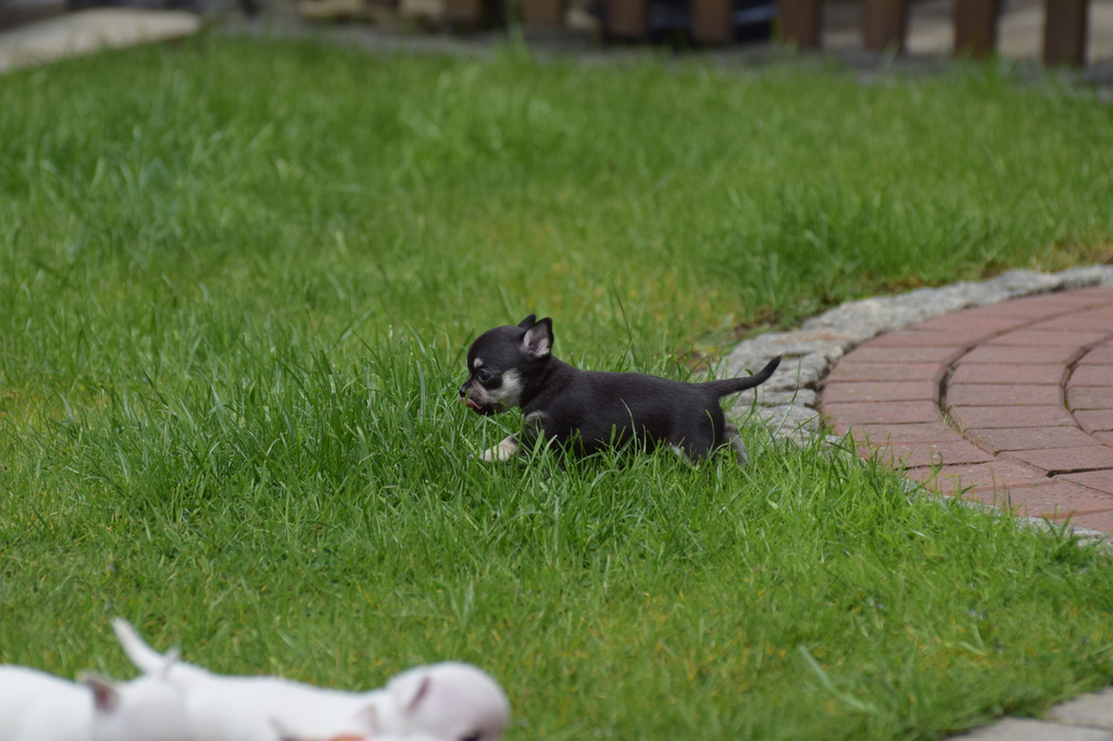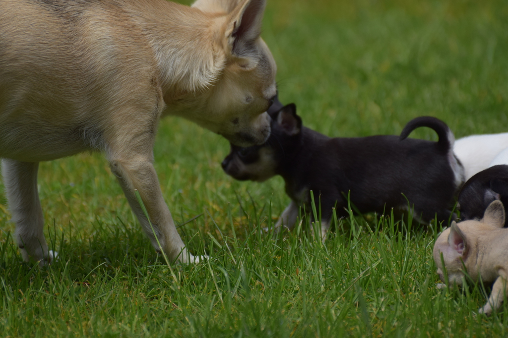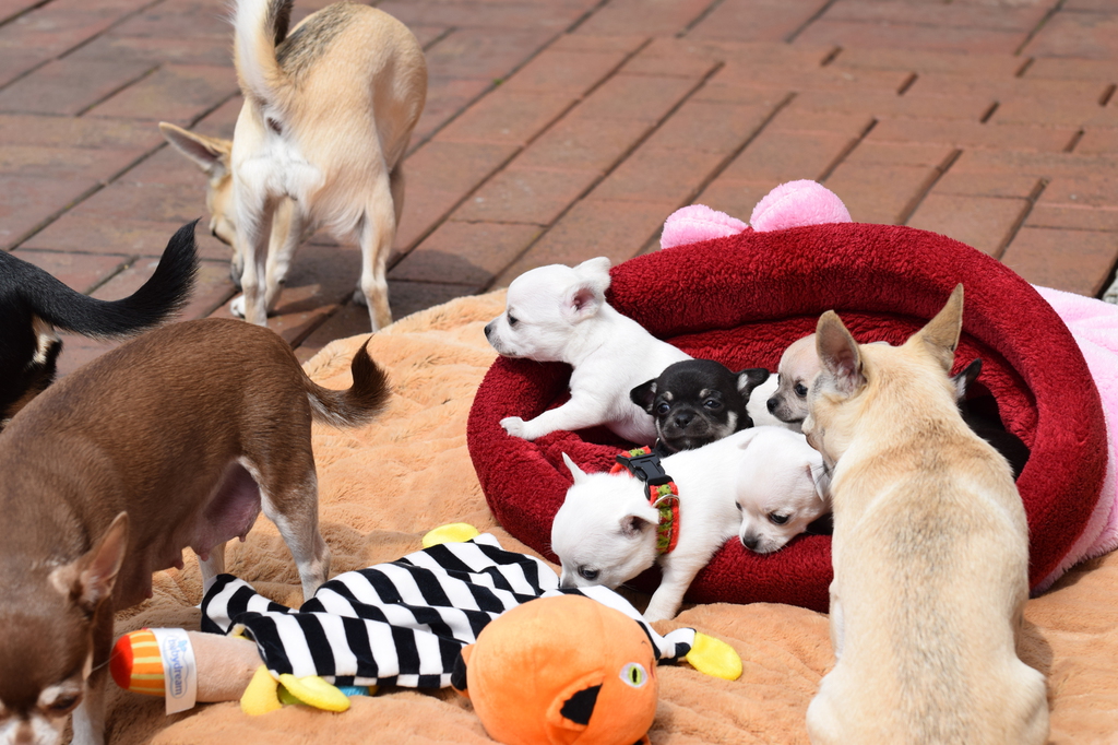 Alle Welpen fressen Mittlerweile selbstverständlich alleine und bekommen nur noch kleine Zwischenmahlzeiten von Mama. Alle Erkunden mutig, neugierig Ihre neue Welt außerhalb des Welpenauslaufs und lernen täglich was neues dazu.